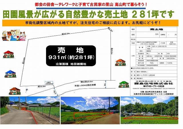生駒市高山町売土地281坪❶奈良生駒市高山町売家・売地・注文住宅専門店 ※契約済 感謝!